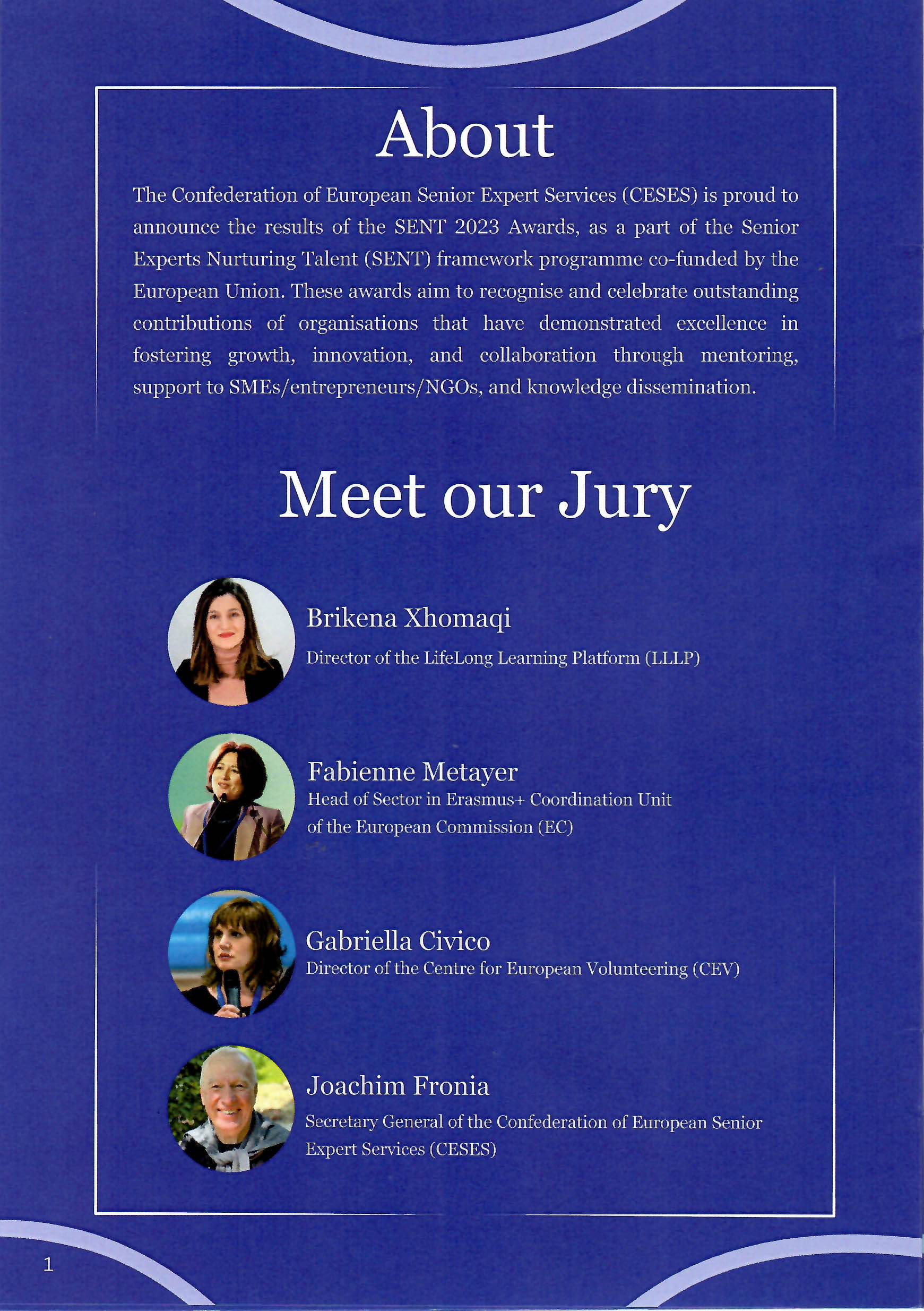 SENT 2023 Final Conference and Award Ceremony Panel Discussion Empowering Change: Senior Expert Volunteering in the European Context Summary Panelists, representing diverse sectors and experiences, will discuss the unique value senior experts bring to initiatives ranging from business development to social and environmental projects.